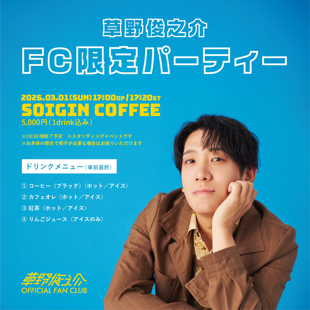 【FC最速先行】草野俊之介ファンクラブ限定イベント 「草野俊之介FC限定スタンディングパーティー」