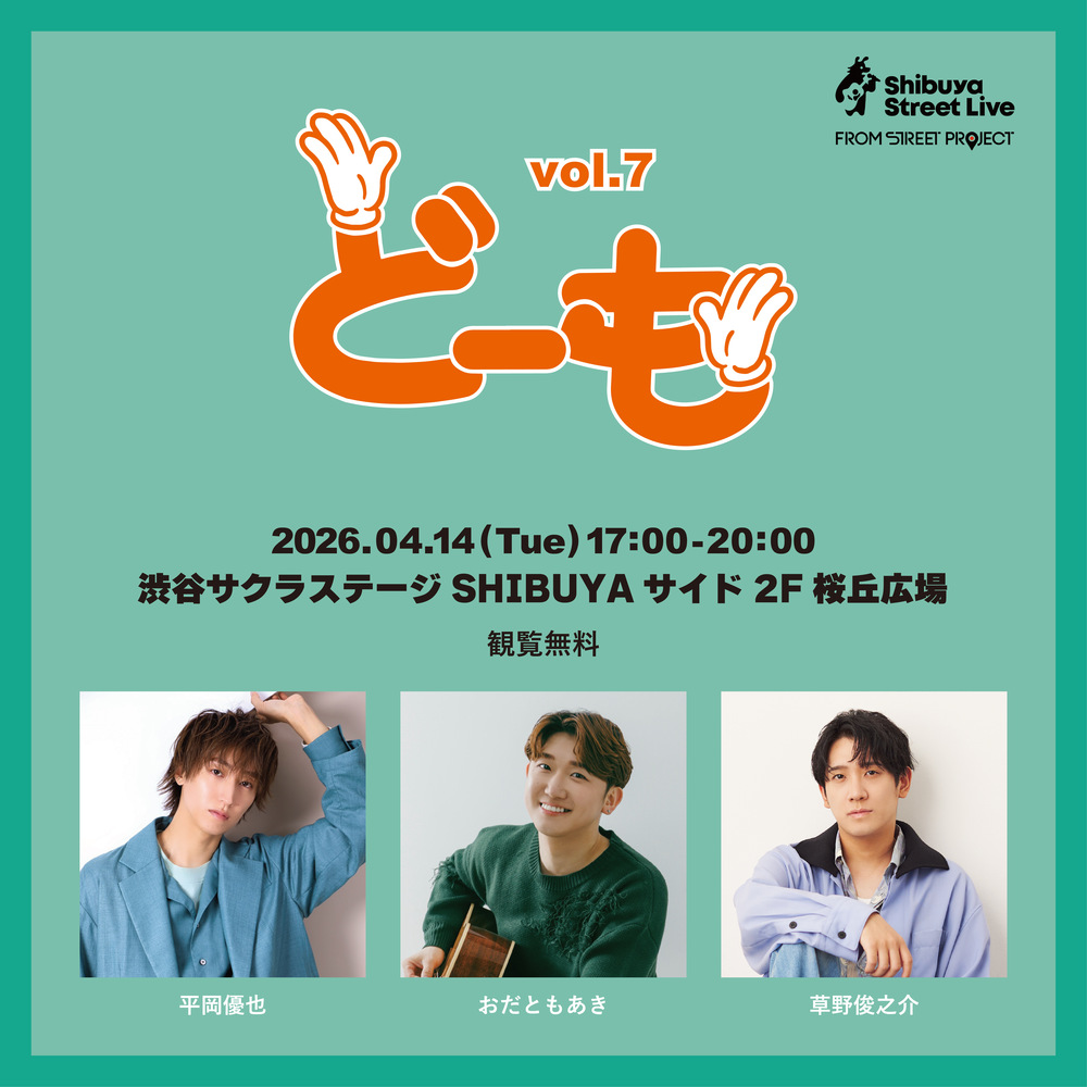 [東京]【ライブ出演】どーも🖐️vol.7 SCHEDULE 2026/04/14(火) 17:00 - 渋谷サクラステージ 2026.04.14 (Tue) 「どーも🖐️vol.7」 会場 : 渋谷サクラステージ出演 : 平岡優也 / おだともあき / 草野俊之介時間 : 17:00-20:00観覧無料 URLをコピーする 報告する